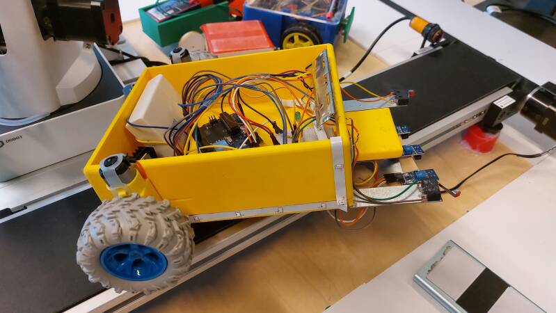 Impressie van magazijn robots gemaakt door de leerlingen, (project 2 leerjaar 1)
